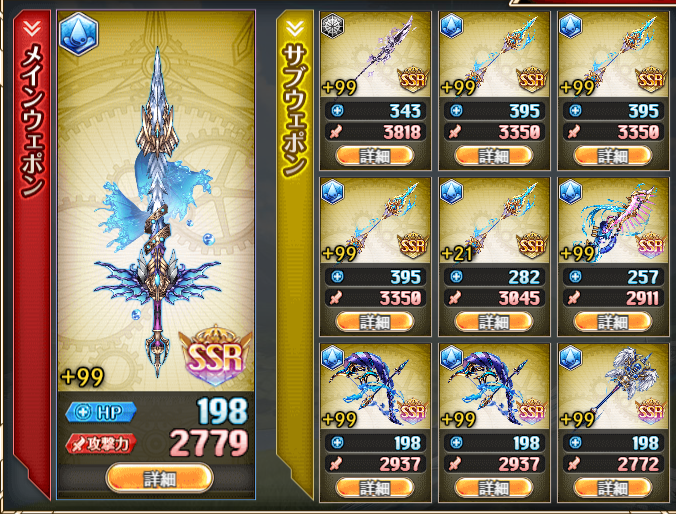 武器と幻獣は以下の通り。無課金なので武器は守護槍編成です。